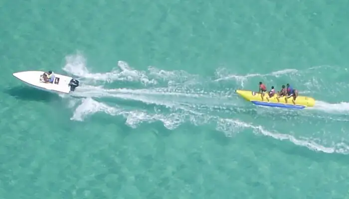 Banana Boat Rides are an exciting way for families or friends to spend time on the sea together. The boat usually carries about 6 or 8 people along with rope attached between it and speedboat pulling it forward creating a roller coaster effect on the sea.